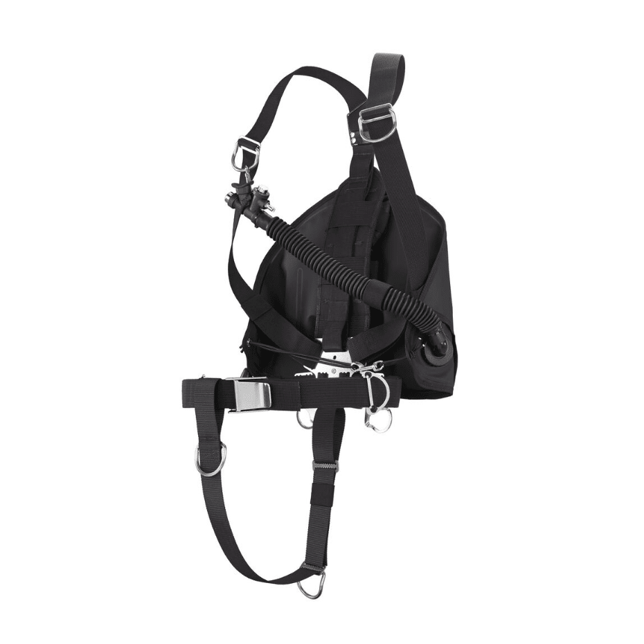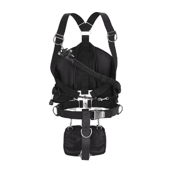 2 anillos en D de acero inoxidable a lo largo de la parte inferior de la espalda sirven para conectar la mochila incluida, o para boyas de señalización, carretes u otros accesorios. Hebilla de cintura de acero inoxidable de alta resistencia.