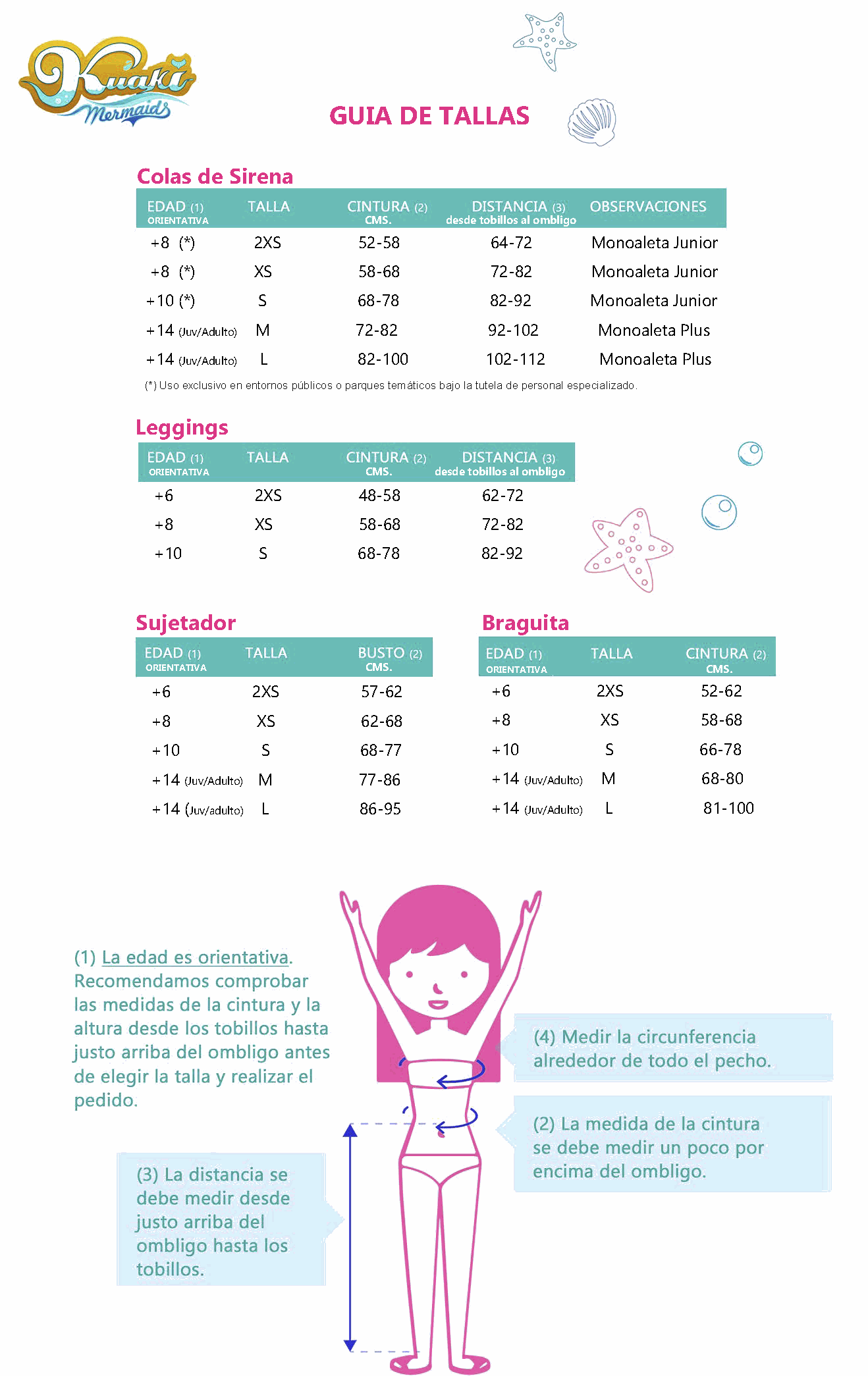 IMPORTANTE: La Colas de Sirena en las tallas M y L se sirven con la Monoaleta KUAKI Plus y las tallas XS y S con la Monoaleta KUAKI Junior. Recuerda elegir la talla de Bikini que mejor se te adapte.