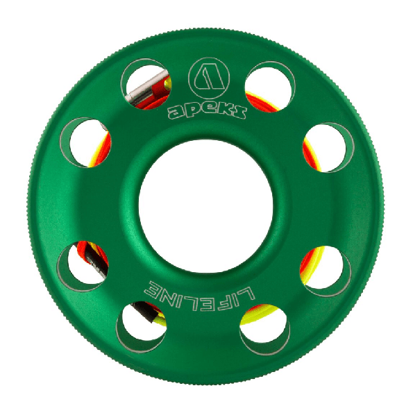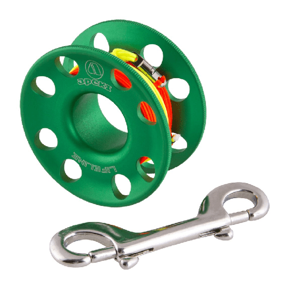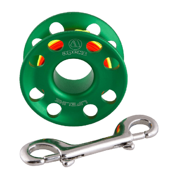 Spool de 30 metros de alta calidad de la marca Apeks. Con una ergonomía y funcionalidad mejoradas y un peso reducido, el spool Lifeline 2022 vuelve a ser líder. Fabricado en aleación de aluminio anodizado resistente con una línea de alta visibilidad para condiciones de poca luz.