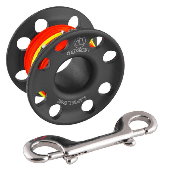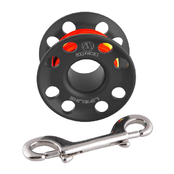 Spool de 60 metros de alta calidad de la marca Apeks. Con una ergonomía y funcionalidad mejoradas y un peso reducido, el spool Lifeline 2022 vuelve a ser líder. Fabricado en aleación de aluminio anodizado resistente con una línea de alta visibilidad para condiciones de poca luz.